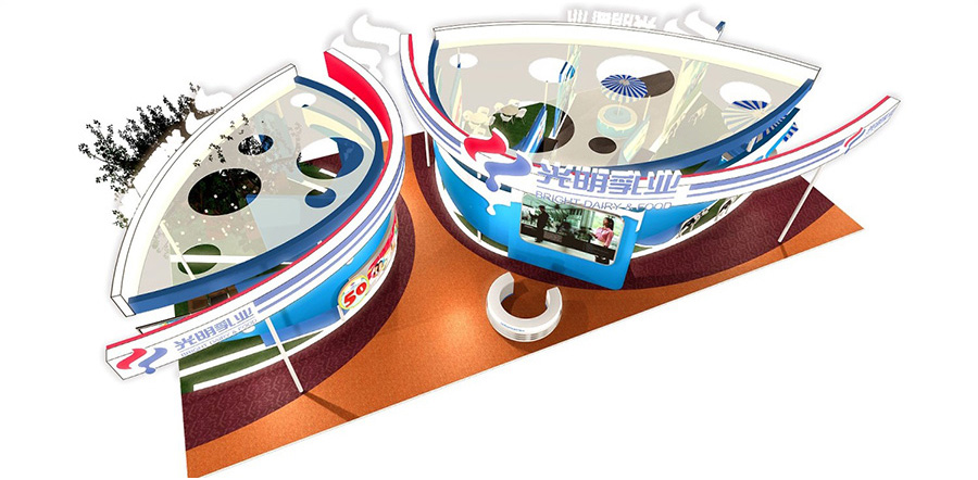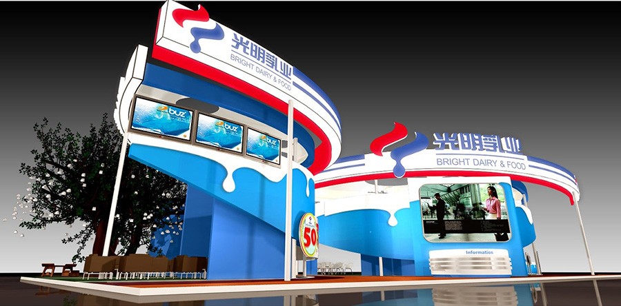 专设 “历史传承区” 与 “未来展望区” ,通过图文、影像及实物产品陈列,呈现光明乳业百年品牌的积淀与国际化创新成果,突出其“中国乳业代表”的品牌地位。