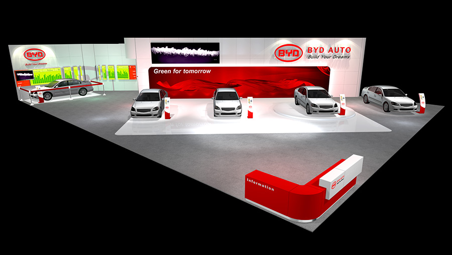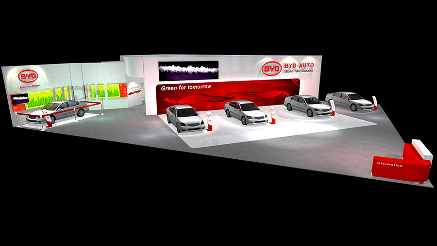 国际化视觉体系构建:将比亚迪品牌的全球化视觉元素与车展特性相结合,设计具备高辨识度与视觉张力的主体形象结构。