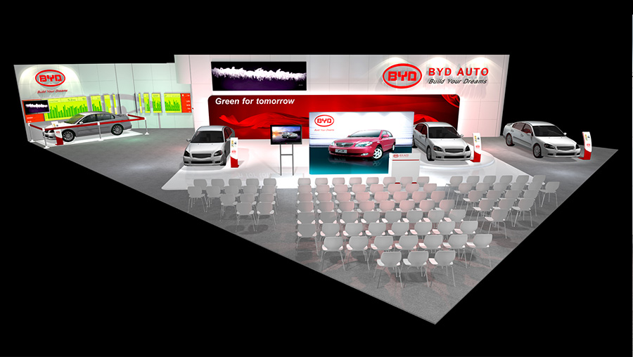 比亚迪参与本次具有全球影响力的北美国际车展,旨在展示其品牌形象与产品系列。北京赛凡策划团队承接了此次500平方米大型展台的设计与搭建任务,需在符合国际展会标准的前提下,通过空间、视觉与动线的整体规划,构建一个能有效承载品牌发布、产品展示及媒体接待等综合功能的展示环境。