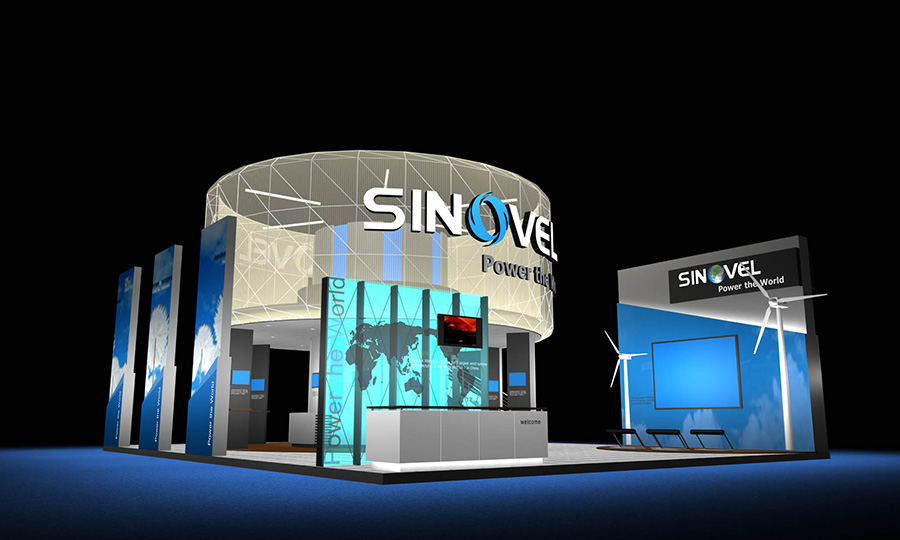 设计团队以“专业、国际、可信”为核心理念,制定了针对风电行业及海外执行的展台方案:
