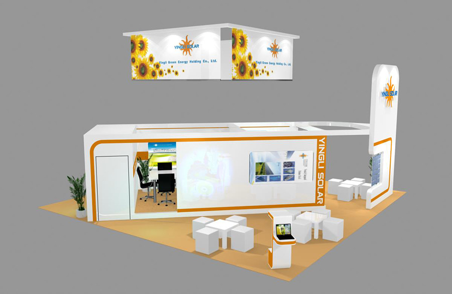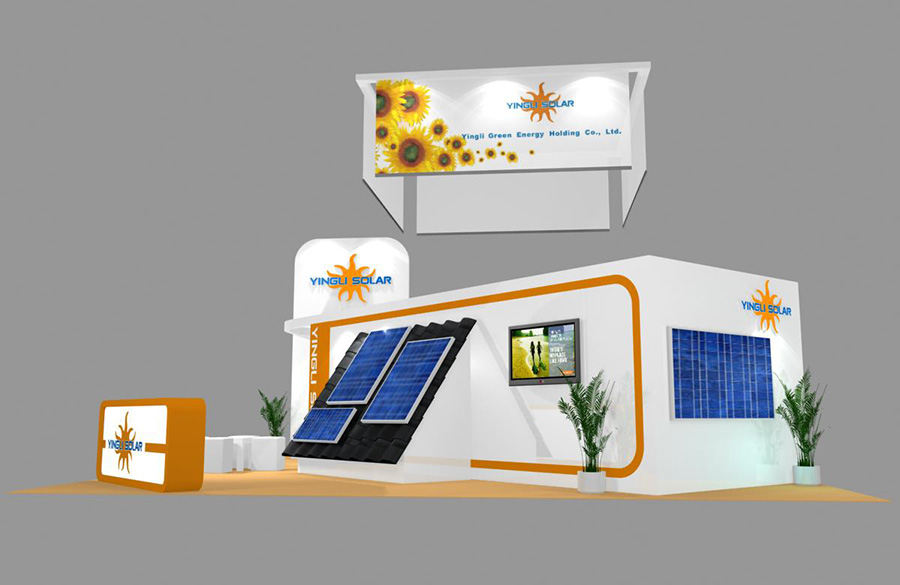 国际化行业形象塑造:将太阳能行业的科技感、绿色环保理念与企业视觉识别系统相融合,通过简洁明快的结构造型与照明设计,塑造清新、现代且专业的国际展台形象。