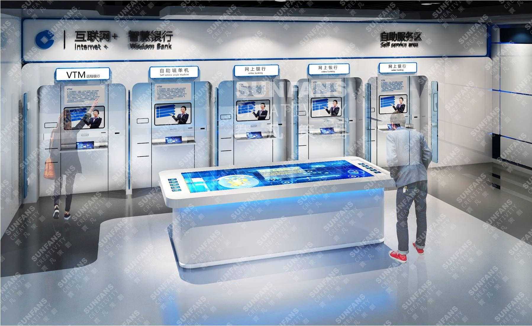 为中国银行设计策划了中国银行首家未来银行旗舰店。展厅设计时巧妙运用了融远程柜员机(VTM)、金融超市、二维码扫描、NFC近场通讯等未来银行中具有前瞻性的智慧化服务,满足了中国银行“未来银行”旗舰店的实验室验证基地、客户体验中心、智能化网点、创新研发基地等四种功能“四位一体”的实际需求。