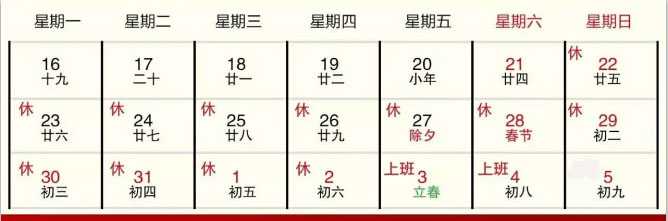 假期结束日期:2017年2月2日 (农历 正月初六)