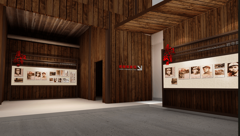 平面布局:根据古建筑的现场情况进行设计,更充分、合理的利用展示空间。将纪念馆的前院作为序厅,前厅展示了新四军将领雕像及将领生平的图文内容,并设置了大型的LED屏幕。后厅将原纪念馆的内容加以整理编排,做集中展示。三间大屋用作廉政教育馆,前两间展示教育整风篇和监督惩处篇,后面一间展示军民同心篇和传承弘扬篇。连接前后屋的过廊,分别展示了廉政精神传承及徽州区政府廉政建设的重要活动等内容,并在廉政教育厅内设置了附厅。