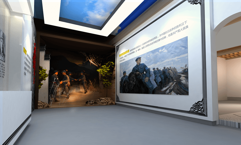 的主题,设计从徽州区的地域特色入手,取徽派建筑的点睛之笔—“雕花窗”做为概念展开的基础元素,形成贯穿整馆的统一形式。再现历史本真、表现铁军廉政精神、突出展示内容的同时,兼顾艺术性和视觉感受,形成美好的参观体验,达到爱国主义宣传教育的目的。