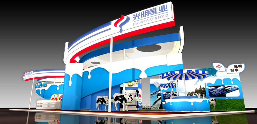 专设 “历史传承区” 与 “未来展望区” ,通过图文、影像及实物产品陈列,呈现光明乳业百年品牌的积淀与国际化创新成果,突出其“中国乳业代表”的品牌地位。
