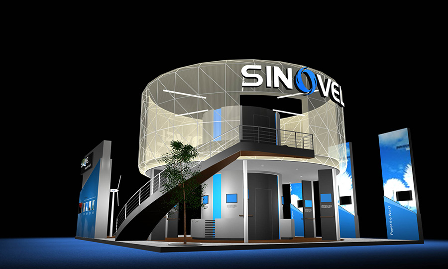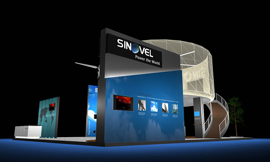 设计团队以“专业、国际、可信”为核心理念,制定了针对风电行业及海外执行的展台方案: