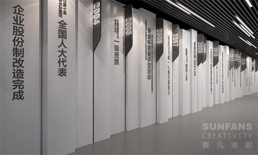 展区采用“典藏”设计概念,运用倒叙的方式,通过企业历程时间轴穿越时空,从伟大回归平凡,寻找企业初心。
